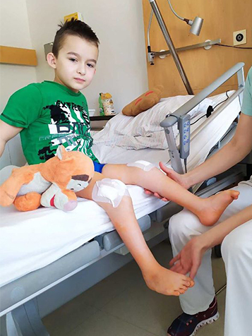 20.10.2016 r. Damian przeszedł operację nastawienia stopy oraz wymiany klamr w kolanach, które zmniejszają przykurcz i odpowiadają za rotację kolan oraz podtrzymują kolana w poprawnej pozycji.
