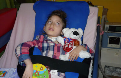 Rozwój psychoruchowy dziewczynki jest znacznie opóźniony. Emilka nie chodzi, nie siedzi, nie mówi i nie potrafi samodzielnie przewracać się na boki. Potrzebuje systematycznej rehabilitacji, niestety walkę ze swoją niepełnosprawnością często przegrywa, bowiem z powodu małej aktywności jej organizmu nieustannie jest narażona na infekcje. Zwykle z powodu nieumiejętności odkaszlania i samooczyszczania dróg oddechowych z wydzielin choruje na zapalenie płuc i zapalenie oskrzeli. Częsta pozycja leżąca, obniżone napięcie mięśniowe i zapadnięta klatka piersiowa dodatkowo to utrudniają. Niedawno przebywała przez ponad miesiąc na oddziale intensywnej terapii i oddziale pulmonologicznym po kolejnym ciężkim zapaleniu płuc oraz niewydolności oddechowej. Rodzice starają się zrobić wszystko, aby uchronić Emilkę przed tak częstymi infekcjami, poprawić jej odporność i systematyczność w rehabilitacji.