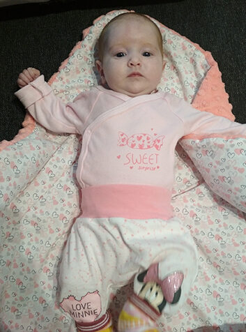 Gabrysia przyszła na świat 28 sierpnia 2019 r. Niestety poród trzeba było wywołać, ponieważ córeczka przestała rosnąć. Urodziła się bardzo malutka, ważyła zaledwie 2220 g. Tydzień po porodzie jej stan bardzo się pogorszył. Profesor podjął decyzję o natychmiastowej operacji ratującej życie! Nawet nie chcę myśleć, co by było, gdybyśmy byli w innym szpitalu…