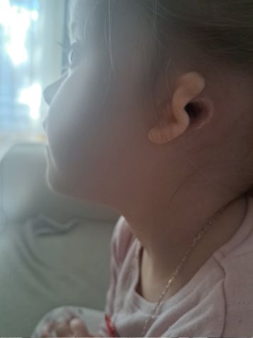 Potem był poród, córeczka w moich ramionach i potwornie blada twarz męża po spotkaniu z lekarzami… Izę szybko zabrano na badania, a ja czekałam na wyrok. Czułam nieopisany lęk i ból o życie mojej kruszynki. Diagnoza była dla nas szokiem. Iza urodziła się ze zrośniętym przewodem słuchowym i niewykształconą małżowiną uszną lewego ucha oraz mocno zwężonym przewodem słuchowym w uchu prawym. Jest jednym z niewielu dzieci w Polsce i na świecie urodzonych z mikrocją i atrezją uszną – wadami wrodzonymi uszu i przewodu słuchowego.