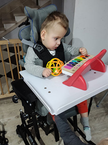 Julian cierpi na wodogłowie wieloprzedziałowe, oczopląs i padaczkę. Od czasu wyjścia ze szpitala nasze życie jest skupione na intensywnej rehabilitacji synka – ćwiczymy 5 razy w tygodniu, więcej nie możemy ze względu na zastawkę. Julian ma rok, a funkcjonuje jak 5-miesięczne dziecko – dopiero uczy się przekręcać na boki, żywi się papkami, ale to nie ma dla nas znaczenia… Najważniejsze jest, że jest już z nami, że możemy zadbać o jego rozwój, że może uczestniczyć w naszym życiu rodzinnym.