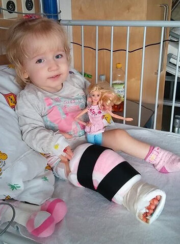 Córeczka przeszła już dwie operacje i kilka zabiegów w naszym kraju, niestety nie przyniosły one znaczącej poprawy, ponieważ w Polsce nie ma szpitala specjalizującego się w leczeniu dysplazji diastroficznej. Po długich poszukiwaniach trafiłyśmy do niemieckiej Kliniki Ortopedycznej w Aschau, która ma w tym duże doświadczenie. Tamtejsi lekarze przeprowadzili w sumie 2 operacje nóg. Kolejne trzy – prawego i lewego biodra oraz kręgosłupa Kasia przeszła w Schön Klinik Vogtareuth. Wszystkie te operacje zakończyły się sukcesem, dzięki nim córeczka mogła samodzielnie chodzić w ortezach. Niemieccy lekarze zrobili wszystko co mogli, niestety dość szybko okazało się, że nie jest to wystarczające... przy tak rzadkiej chorobie, jaką ma Kasia ciężko cokolwiek przewidzieć, a oni nie chcieli eksperymentować.