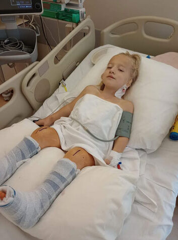 10.09.2022 r. Dzisiaj Kasia przeszła operację ortopedyczną w Paley European Institute w Warszawie. Zgodnie z planem lekarzom udało się zoperować obydwie stopy. Przez 6 kolejnych tygodni Kasieńka będzie musiała być w gipsie, ale po jego zdjęciu nie będzie potrzebowała ortez! Przed nią długotrwała i bolesna rehabilitacja. Dr Feldman podjął także decyzję o kolejnej operacji — wyjęcia śrub z bioder i kolan. Została ona zaplanowana na przyszły rok. Niestety nie będzie to ostatnia interwencja chirurgiczna. W przyszłości konieczna jest również operacja kręgosłupa!
