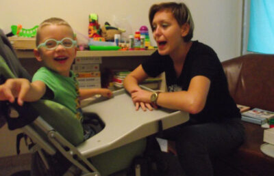 Chłopiec cierpi na mózgowe porażenie dziecięce, nie siedzi samodzielnie, nie raczkuje, nie mówi. Ma spastyczne rączki i nóżki.