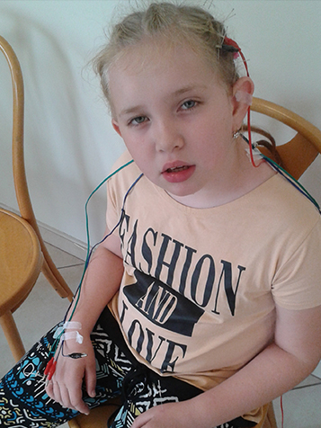 Obecnie dziewczynka ma zdiagnozowane opóźnienie psychoruchowe, obniżone napięcie mięśni, epilepsję. Wymaga intensywnej rehabilitacji i stymulacji. Bierze udział w terapii ruchowej, integracji sensorycznej, hipoterapii, masażach, treningu biofeedback. Dzięki tak różnorodnym zajęciom ogólnorozwojowym robi duże postępy. Niestety miesięczny koszt zajęć jest ogromny, a rodzina nie jest w stanie dłużej ich opłacać.