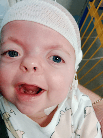 31 grudnia Polcia trafiła do domu. To był jeden z najwspanialszych dni naszego życia. Tak długo wyczekiwany przez całą naszą rodzinę. Pola jest niesamowita, kochana, pogodna, wytrwała, ciekawa świata po prostu wspaniała. Skradła serca wszystkich domowników, każdego dnia dzieli się z nami swoim uśmiechem. Nareszcie jesteśmy razem i możemy się tym cieszyć, a Pola poza rodzicami zyskała też dwie starsze siostry. Oczywiście chcemy by Pola rozwijała się jak najlepiej. Dlatego już od 3 stycznia zaczęliśmy rehabilitację i niezbędne konsultacje. Jednak naszą radość w ciągu kilku dni przesłonił niepokój i strach. Ponieważ zauważyliśmy, że Pola nie reagowała na nasz głos, szczekanie psa czy nawet fajerwerki. Z każdym dniem upewnialiśmy się, że Polcia nie słyszy. 12 stycznia odbyła się konsultacja laryngologiczna. Pola została skierowana w trybie pilnym na zabieg drenażu uszu a potem dalszej diagnostyki audiologicznej. 11 stycznia odbyła się również zaplanowana już wcześniej konsultacja okulistyczna. Okazało się, że Pola ma dużą wadę wzroku. Rozpoczęliśmy diagnostykę neurookulistyczną. Za kilka dni mamy również konsultację kardiologiczną. 17 lutego Pola miała zabieg w znieczuleniu ogólnym wycięto zmianę w uszku oraz założono dreny. Po prawie dwóch miesiącach strachu pojawiła się iskierka nadziei. Pola nie zareagowała na nasz głos po zabiegu, ale zaczęła grzechotać piłeczką, którą do tej pory jedynie oglądała i wkładała do buzi. To były dla nas emocje nie do opisania, z każdym dniem Pola odkrywa nowe dźwięki, choć jej percepcja słuchowa jest zaburzona i nie potrafi ich zlokalizować widzimy, że zatrzymuje się i analizuje niektóre odgłosy w tym nasz głos :). Zaczęła również sama wydawać różne dźwięki także jesteśmy pełni nadziei, że przy odpowiednim wsparciu Pola będzie słyszała i mówiła jak inne zdrowe dzieci. Ta mała kruszyna jest przy tym wszystkim niesamowicie wytrwała. Znosi bardzo cierpliwie wszelkie badania i wytrwale ćwiczy. Jak wygląda nasz tydzień? Jest wypełniony prywatnymi konsultacjami, badaniami, rehabilitacjami. Pola ciągle toczy walkę o lepsze życie. Do walki o prawidłowy rozwój mózgu, rączek, rozszerzania diety doszły oczy, uszy i mowa. Bez Państwa wsparcia nie byłoby to wszystko możliwe! Przed nami za kilka tygodni ogromne wyzwanie. Ponieważ udało nam się dostać termin w Hamburgu i mamy zielone światło od Pana Profesora. Dzięki Państwa wsparciu udało się nam uzbierać pieniążki na pierwszy etap operacji rączek czyli wyciągniecie kciuka oraz niezbędną rehabilitacje. Pola mimo swoich ograniczeń zawsze parła do przodu mamy nadzieję, że i tym razem tak będzie. Boimy się, ponieważ po operacji czekają nas tygodnie bolesnych zmian opatrunków, oraz niełatwa rehabilitacja. Operacja rączek nie odbędzie się w grudniu po głowie jak zakładaliśmy wcześniej, a już teraz w marcu. Daje to duże szanse na wykształcenie u Poli chwytu. Zabieg jest zaplanowany na 20 marca bieżącego roku. Jesteśmy pełni obaw ale i nadziei. Bardzo prosimy wszystkich o wsparcie modlitewne w tym czasie. Operacja główki na chwile obecną pozostaje zaplanowana na czerwiec jednak termin ten może ulec zmianie w zależności od sytuacji zdrowotnej Poli po Hamburgu.