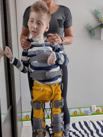 Do ilu drzwi pukaliśmy, ilu lekarzy go diagnozowało nie da się tego zliczyć… Synek przeszedł operację ściągnięcia zaćmy i wszczepienia sztucznych soczewek, aby mógł nas widzieć i mieć poczucie dnia i nocy. Przeprowadzono także operację uwalniającą przywodziciele nóg, aby zmniejszyć ból i sprawniej go rehabilitować. W wieku 7 lat miał założonego PEG-a, aby łatwiej podawać leki, suplementy, a przede wszystkim pełnowartościowe posiłki i picie. Z czasem okazało się, że potrzebna jest operacja funduplikacji żołądka oraz wyłonienia vesikostomi (wyjścia nad spojeniem łonowym do oddawania moczu). Jakby tego był mało w 2021 r. Radek przeszedł silne zapalnie płuc, konsekwencją czego było założenie tracheostomii. Ogromnym sukcesem jest fakt, że udało się „poskromić” padaczkę, po jednej z operacji częstotliwość ataków ze 100-200 dziennie spadła do 1-2.